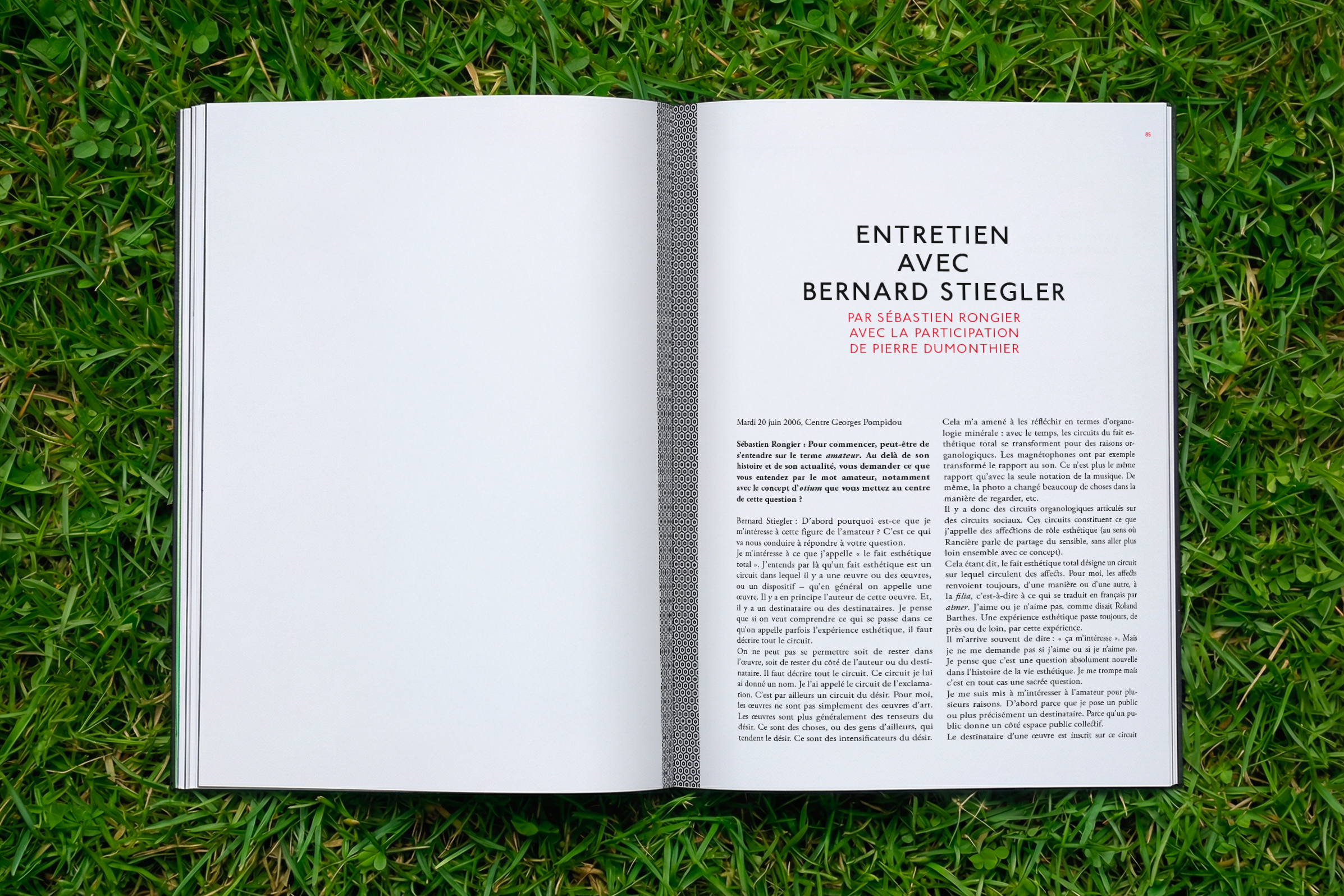 - Entretien avec Bernard Stiegler par Sébastien Rongier avec la participation de Pierre Dumonthier